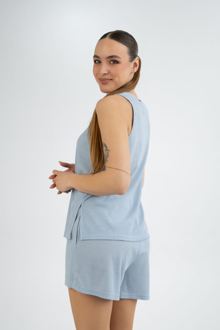 Vasarinis tekstūrinės medžiagos kostiumėlis su šortais MIA | žydras