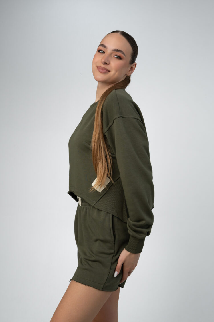Dviejų dalių chaki kostiumėlis su šortais