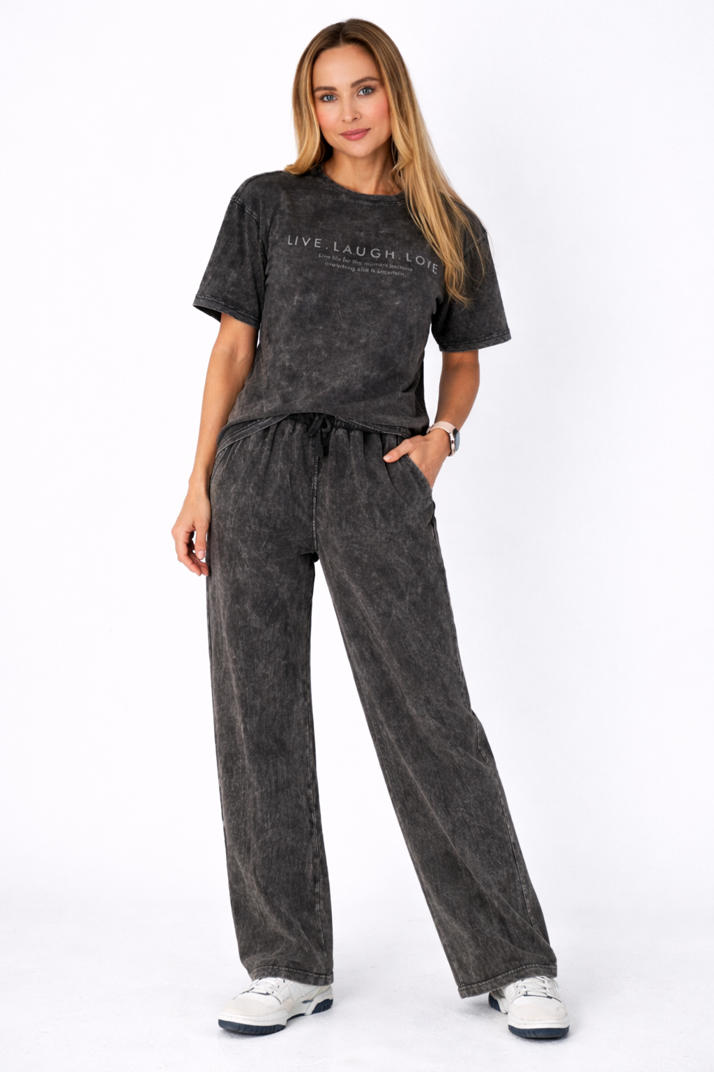 Būkite pirmas aprašęs “Blukintos medvilnės kostiumėlis su marškinėliais “Love”, juodas”