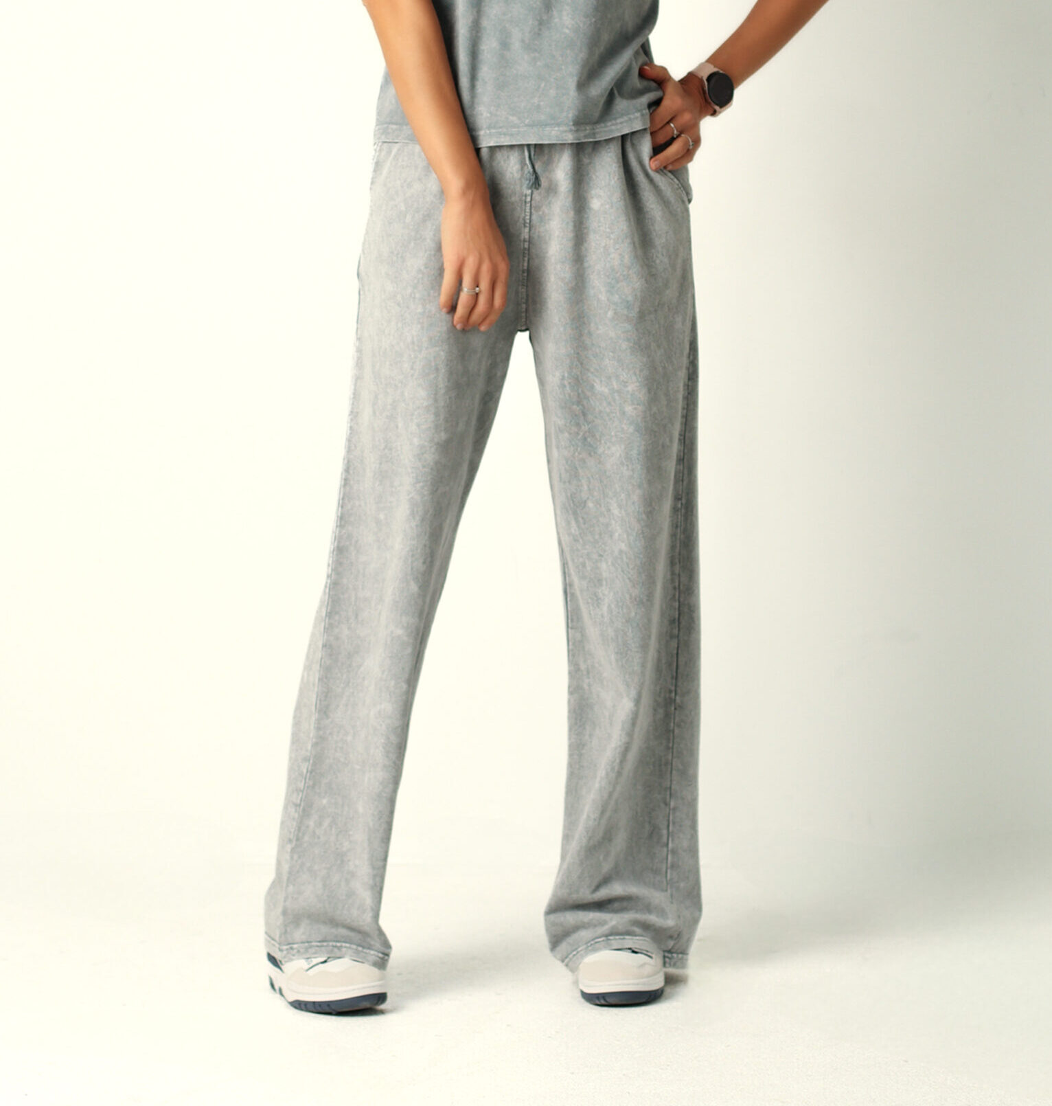 Blukintos medvilnės vidutinio platumo kelnės, pilkos