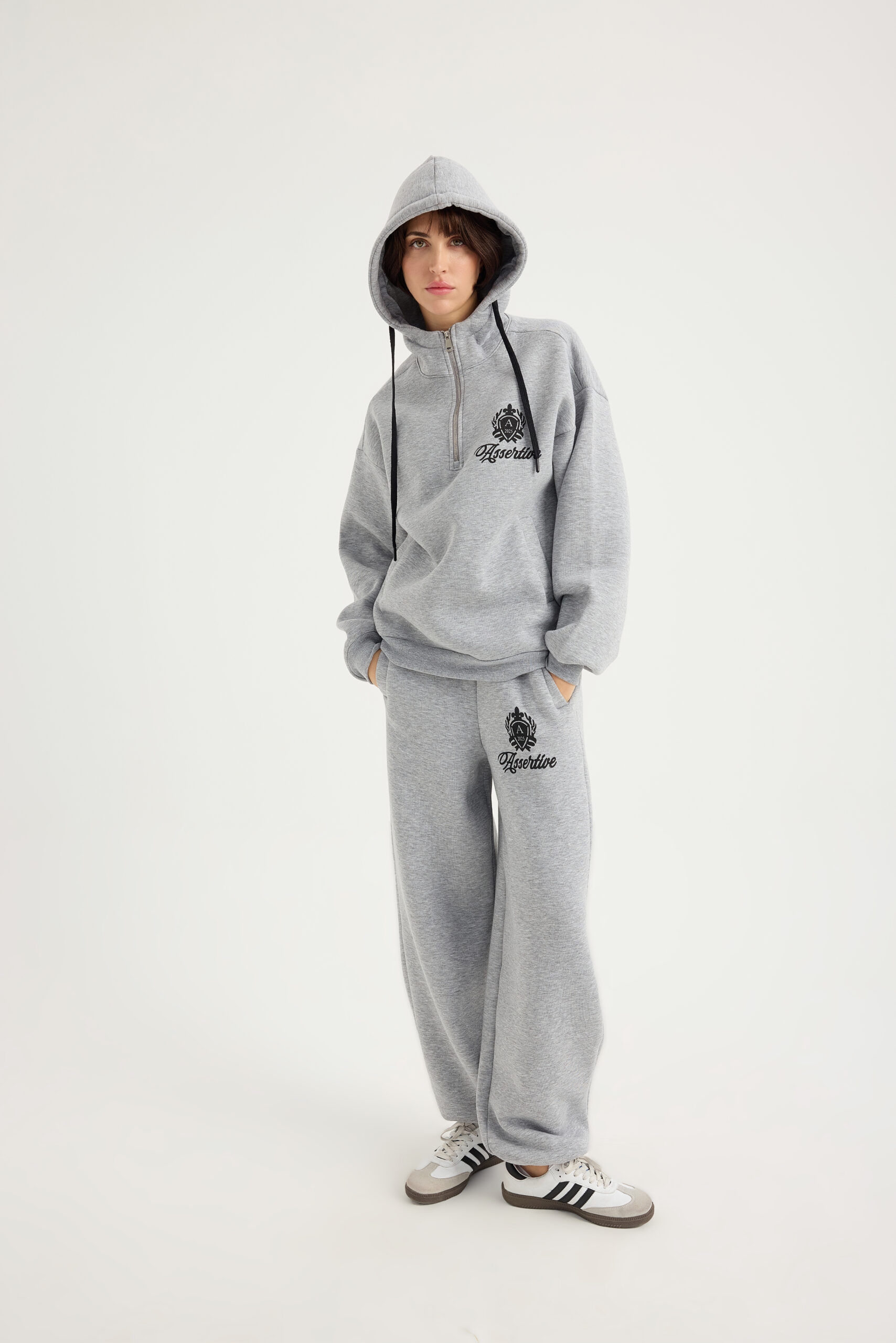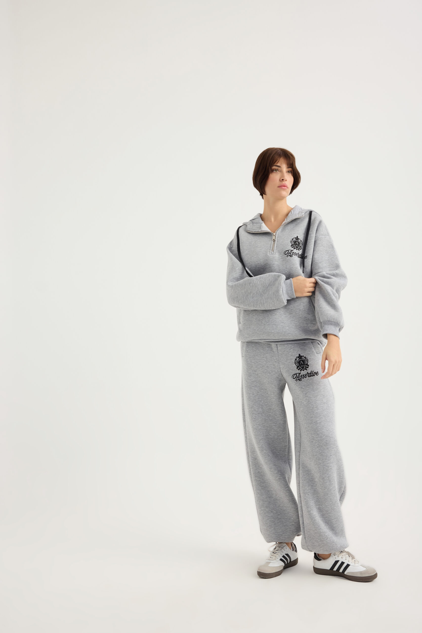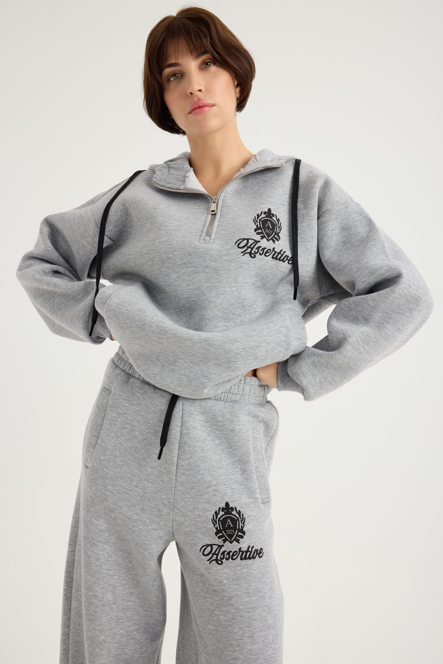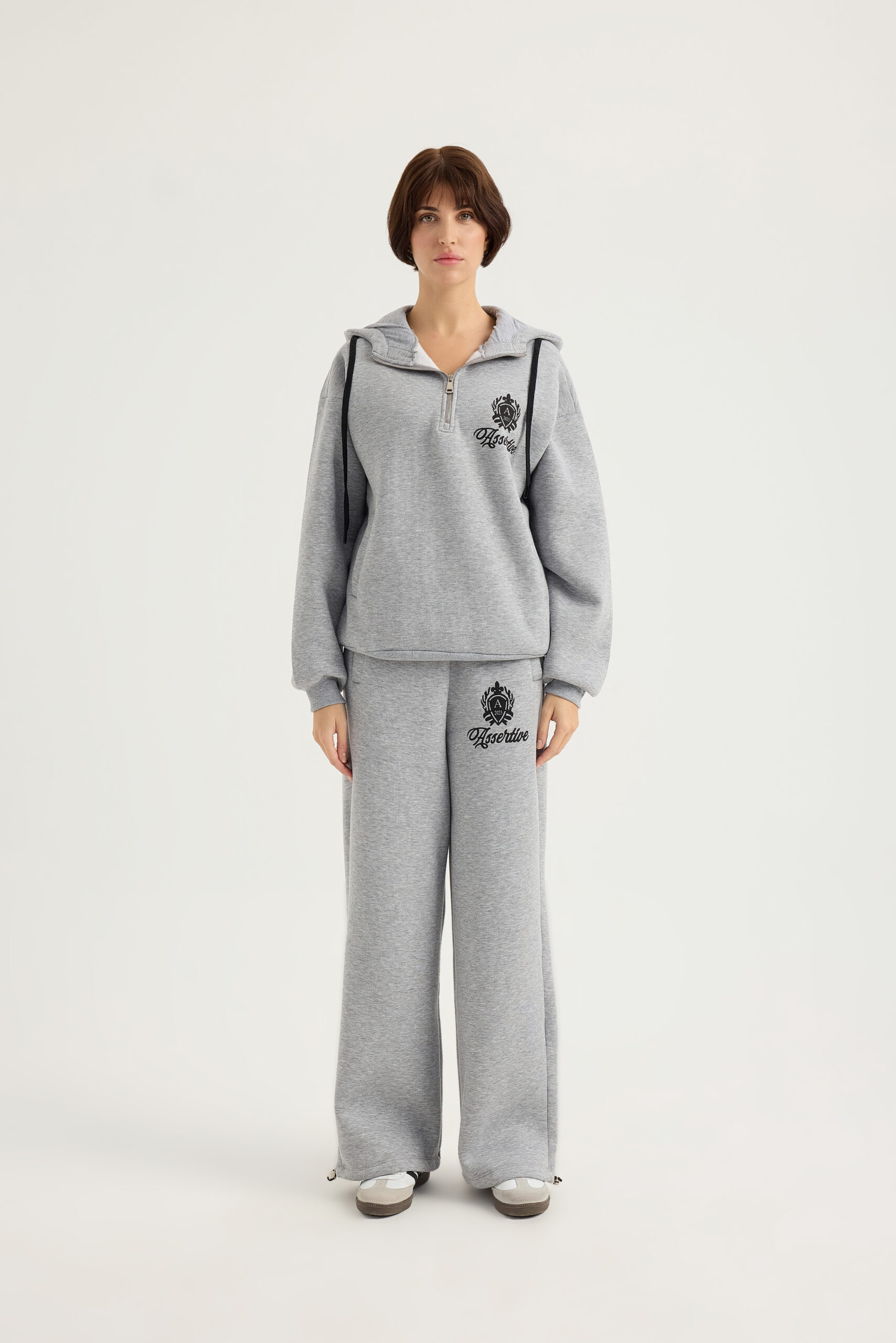 Laisvalaikio kostiumas su pūkeliu, pilkos melange spalvos