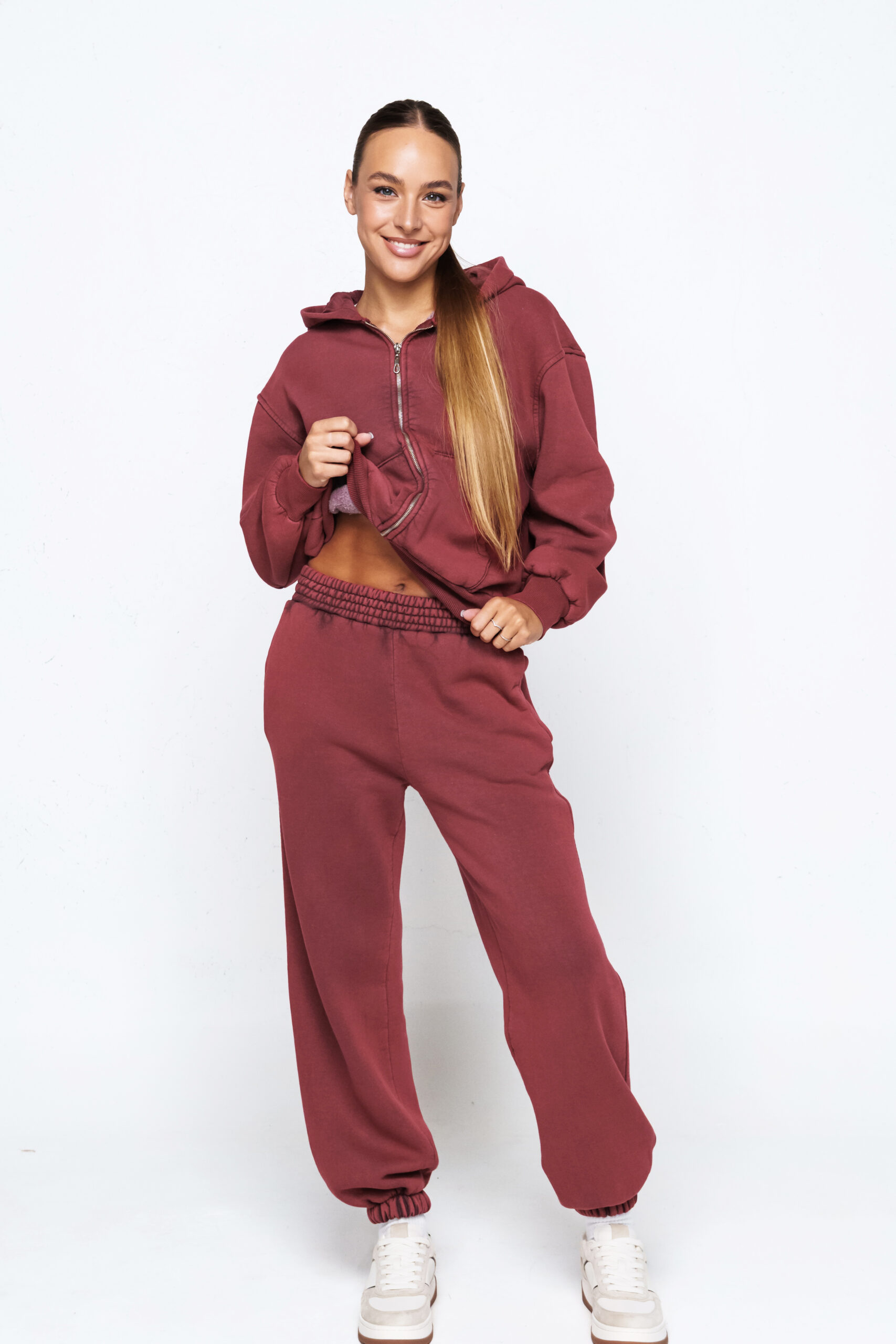 Kelnės su guma apačioje, todėl patogiai priglunda ir išlaiko sportišką, tvarkingą siluetą.