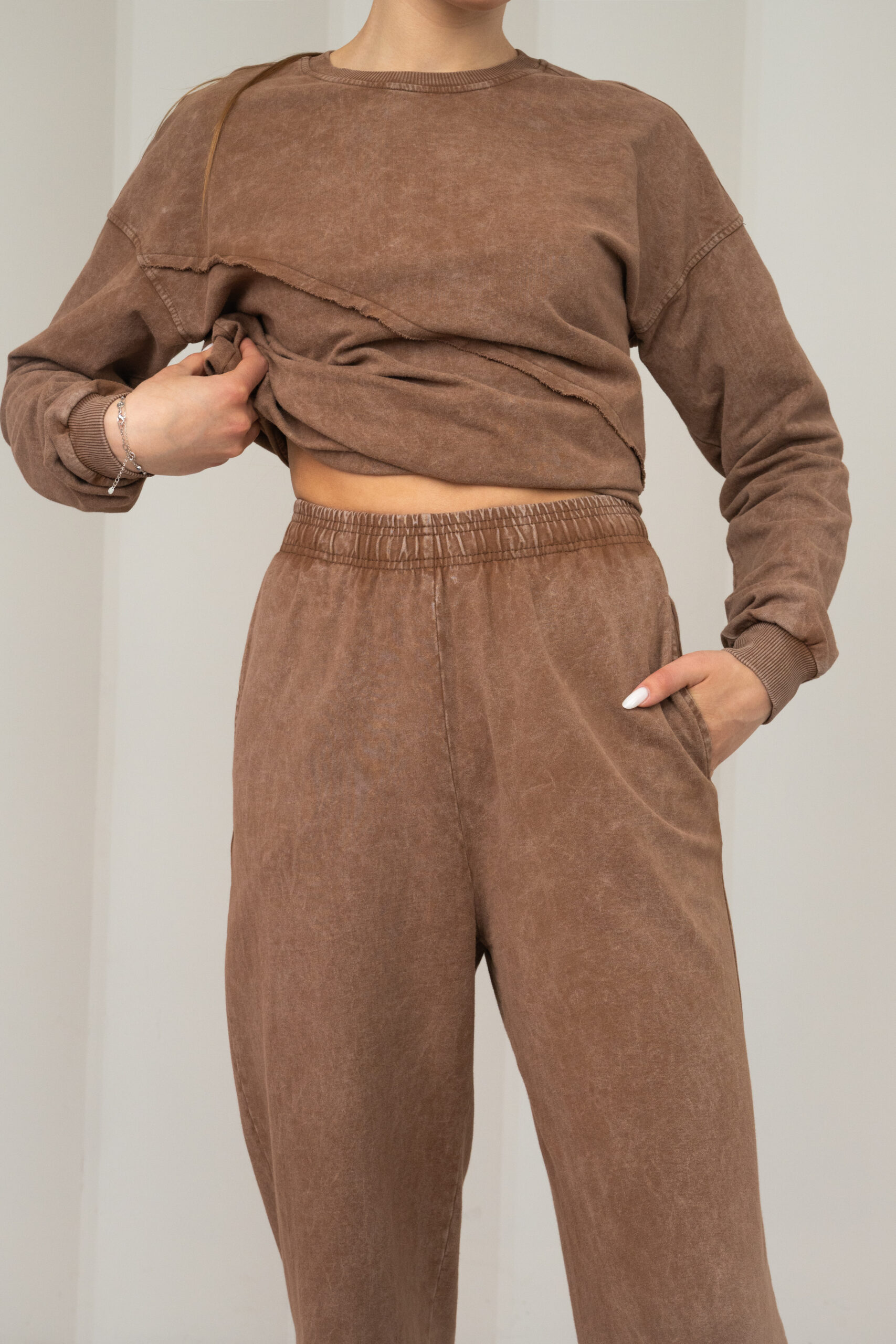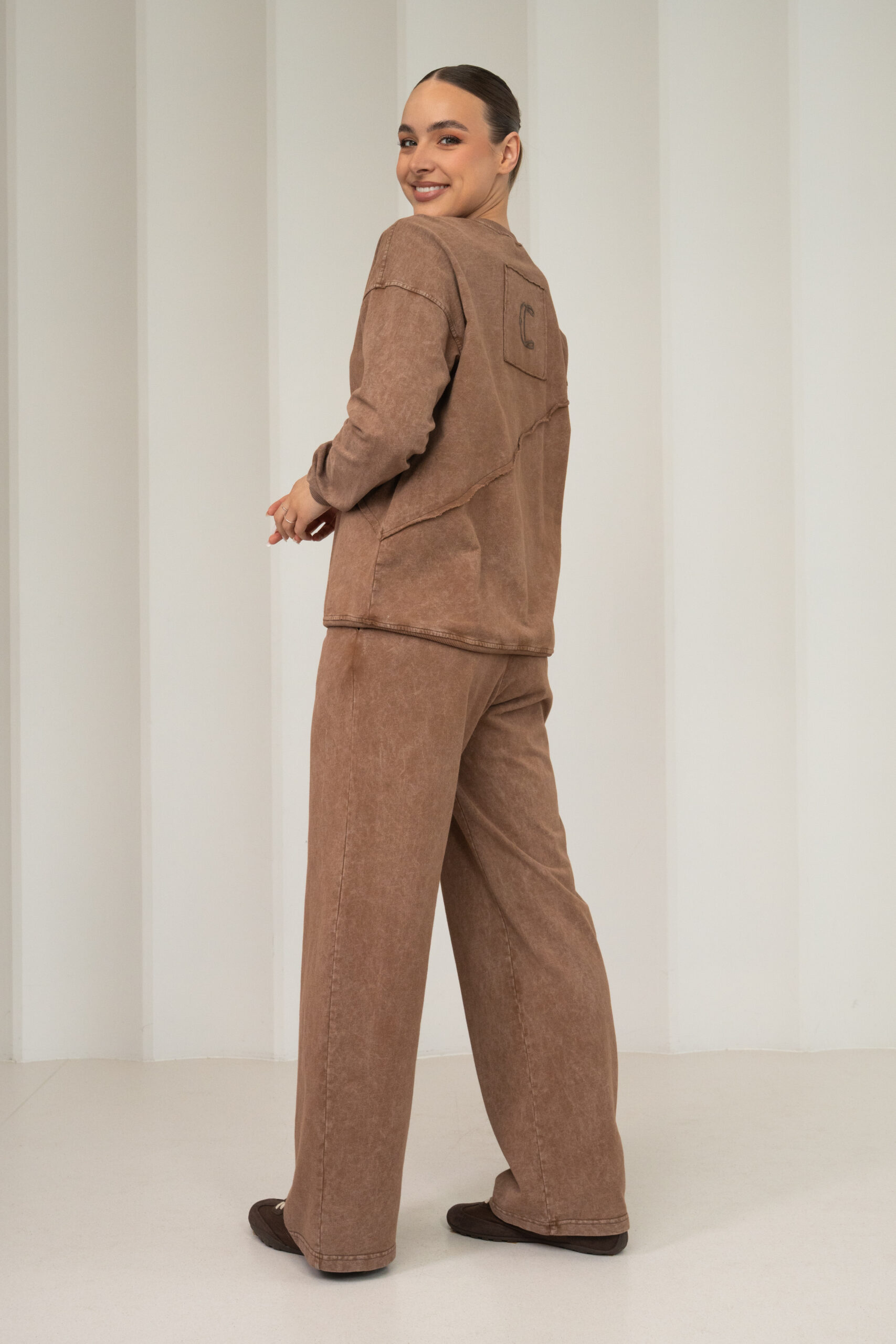 CHILLFIT Mocha blukintos medvilnės kelnės – naujos CHILLFIT kolekcijos dalis, sukurta toms, kurios vertina patogumą, tvarkingą siluetą ir lengvai pritaikomą modelį kasdienai.
