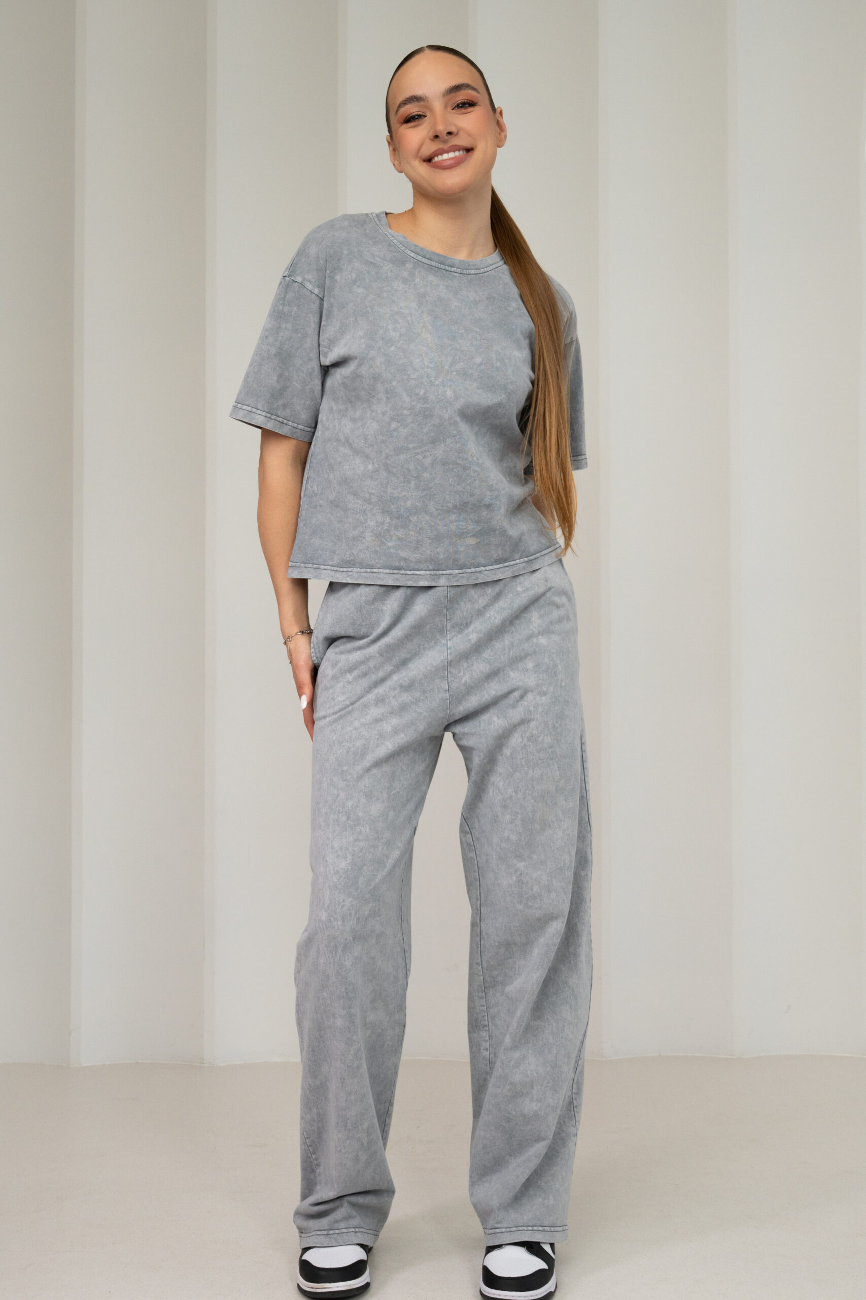 CHILLFIT Mist blukintos medvilnės kelnės – naujos CHILLFIT kolekcijos dalis, sukurta toms, kurios vertina patogumą, tvarkingą siluetą ir lengvai pritaikomą modelį kasdienai.