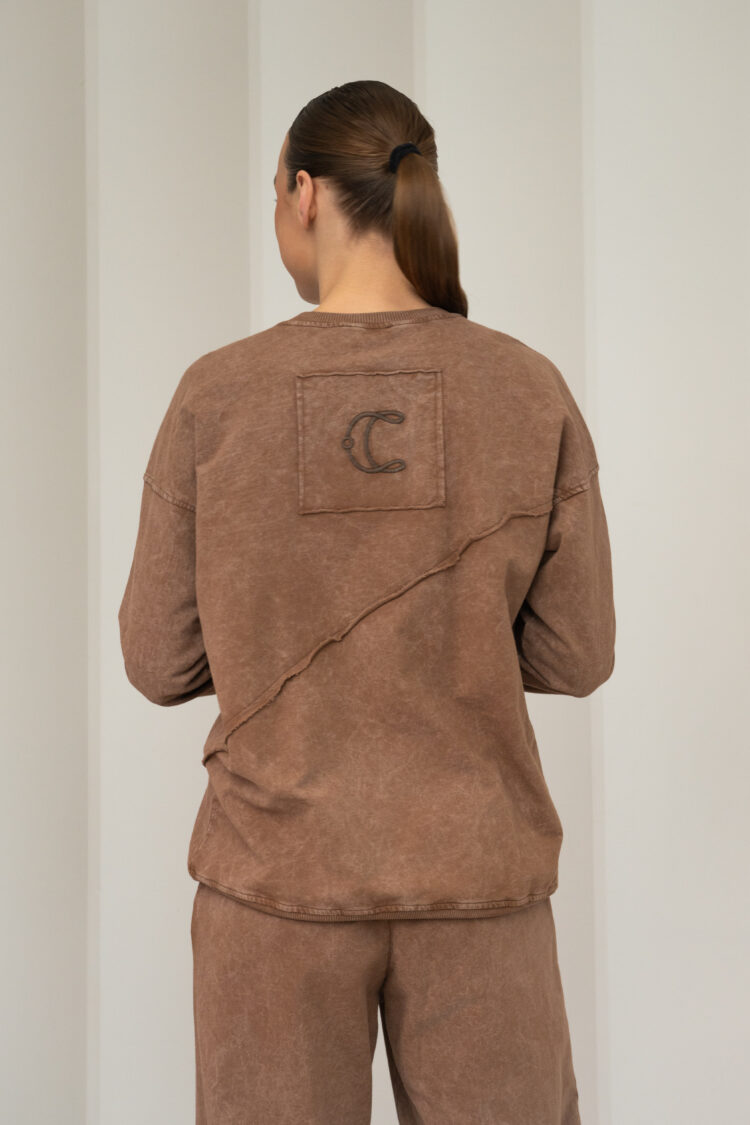 Mocha blukintos medvilnės džemperis