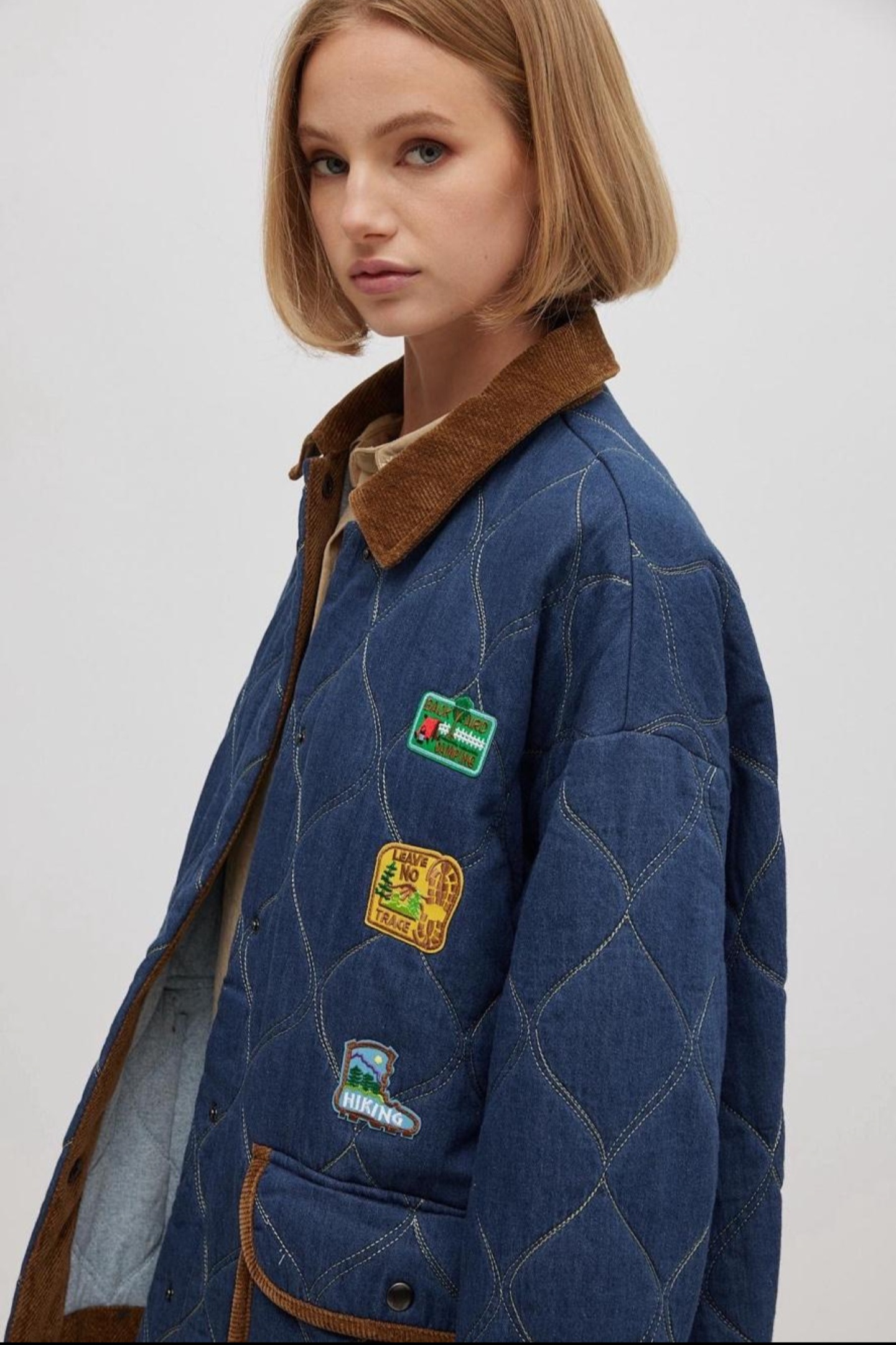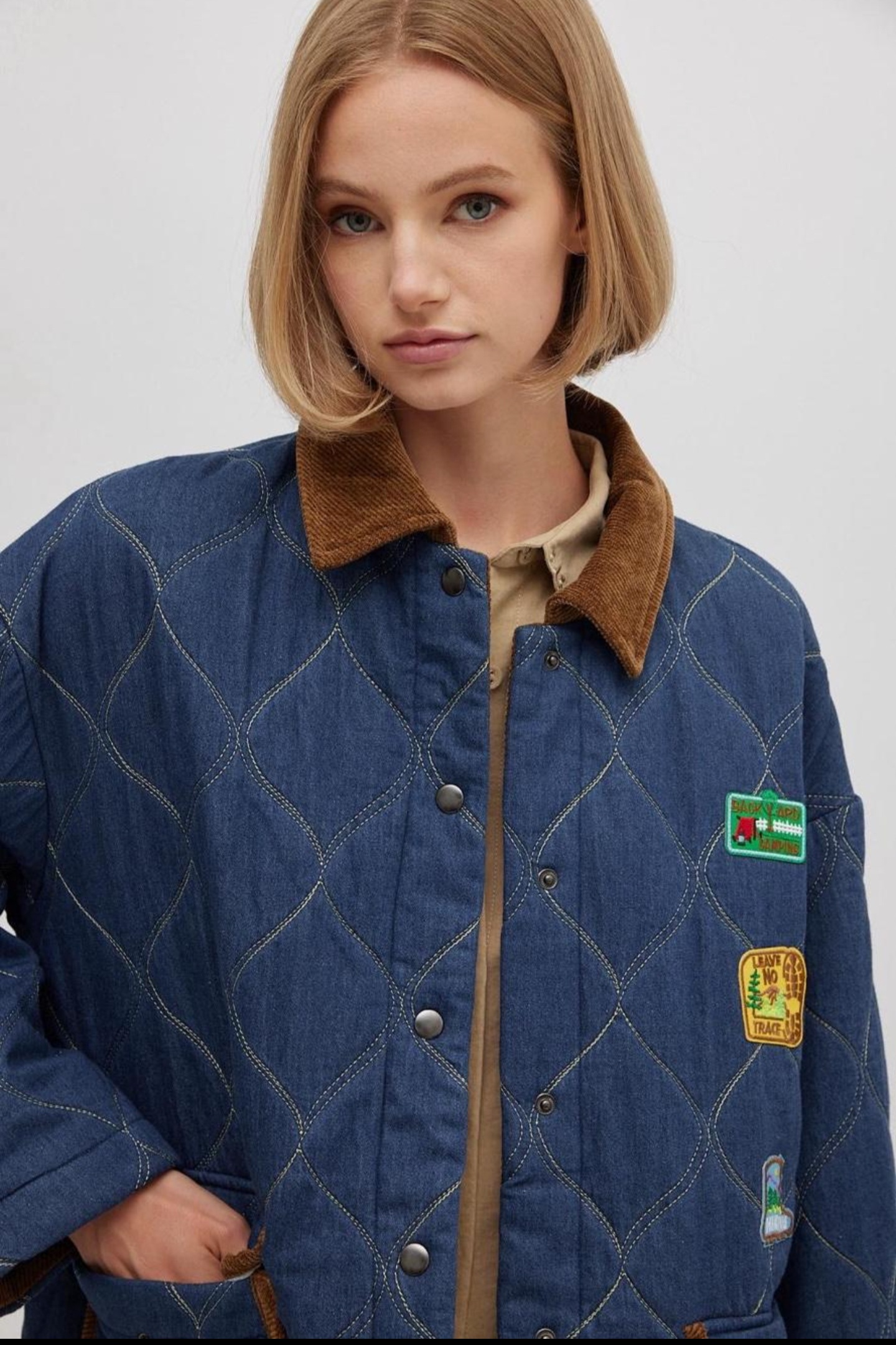 Šilta ir stilinga striukė rudeniui bei ankstyvai žiemai. Pagaminta iš dygsniuoto džinso su veliūro kantais, papildyta sintepono užpildu, kuris suteikia jaukumo ir apsaugo nuo vėsesnio oro.
