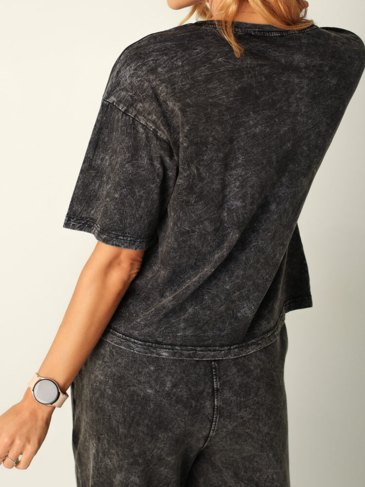 Medvilniniai oversize blukintos medvilnės marškinėliai pilki