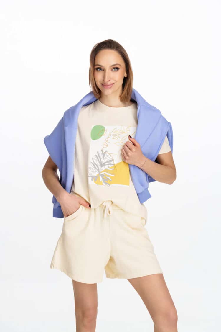 Moteriški marškinėliai su meniniu printu šviesto gelsvos spalvos