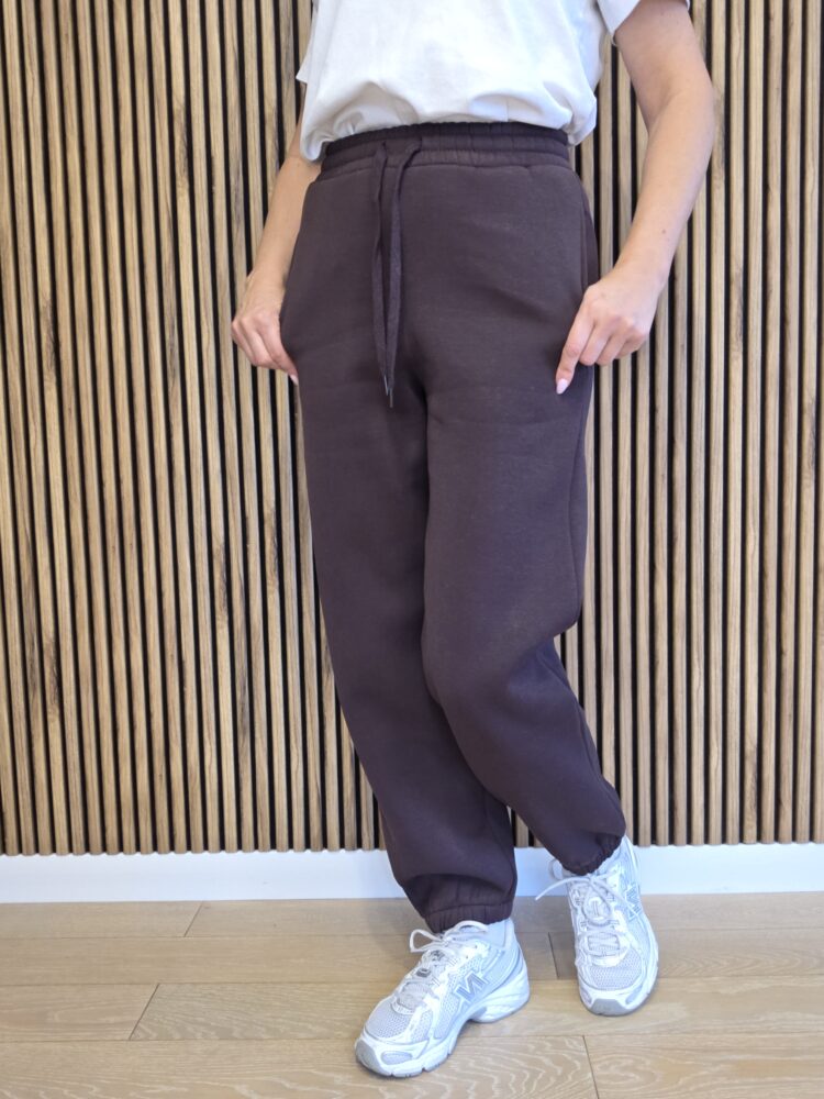 Laisvalaikio kelnės su pūkeliu šokoladinės