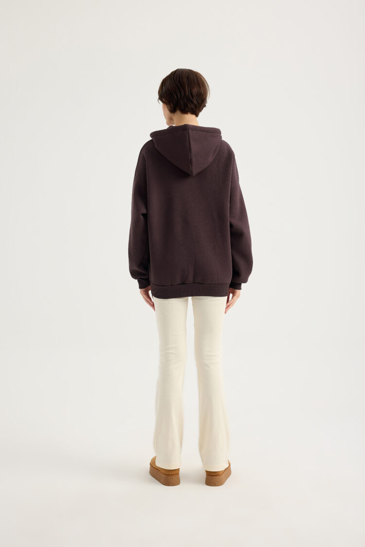 Oversize džemperis su pūkeliu, šokoladinės spalvos